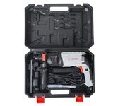 Потребляемая мощность: 990. Количество скоростей: односкоростной. Максимальная энергия удара: 3.4. Количество патронов в комплекте: один. Тип основного патрона: SDS-plus. Максимальный диаметр сверления (сталь): 13. Макс. диаметр сверления полыми коронками: 68. Максимальный диаметр сверления (дерево): 30. Жесткий кейс в комплекте: есть. Особенности: Эффективный щеточный реверс 3 режима работы + функция поворота долота Готов к работе – буры и долота в комплекте . Вес инструмента: 3. Длина сетевого кабеля: 2. Комплект поставки: Перфоратор Дополнительная рукоять Ограничитель глубины Ударные сверла 3 шт Долото 2 шт Руководство пользователя с гарантийным талоном и Инструкция по безопасности . Тип электропитания: от электросети. Габариты упаковки (ед) ДхШхВ: 0.29x0.42x0.11. Вес упаковки (ед): 4.84. Тип электрического двигателя: щеточный. Страна производства: Китай. Гарантия: 24 мес.. Число оборотов: 1200 об/мин. Частота удара: 5400 уд/мин. Диаметр сверления (бетон): 28 мм. Вес: 3 кг. Мощность: 990 Вт; энергия удара: