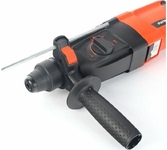 Мощный перфоратор легко справится с работой на стройке и в домашнем хозяйстве. Универсальное использование в режимах удара, сверления, сверления с ударом и в качестве миксера. Патрон SDS-plus позволяет производить быструю смену оснастки одним движением ускоряя рабочий процесс. Практичная установка долота с фиксацией в любых угловых положениях упрощает проведение работ. Переключение реверса поворотом щеткодержателя для сохранения одинаковой мощности в прямом и обратном направлении вращения повышает производительность труда. Эргономичный корпус выполненный с применением нейлона, стойкого к ударам и низким температурам оснащен задней рукояткой с резиновой противоскользящей вставкой для удобства выполнения работ. Фиксация клавиши пуск для удобства продолжительной работы. Дополнительная рукоятка с креплением для ограничителя глубины сверления быстро регулируется в наиболее удобное для оператора положение с помощью одной руки. Предохранительная муфта защищает инструмент и оператора при заклинивании бура. Удобный пл