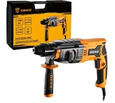 Перфоратор сетевой DEKO DKH1300W в кейсе предназначен для сверления отверстий в различных материалах (дерево, бетон, кирпич, сталь и т. д. ) в режимах сверления и сверления с ударом, а также ударного долбления при установке соответствующей оснастки. Переключение между режимами осуществляется при помощи тумблера сбоку на корпусе. Перфоратор поставляется в пластиковом кейсе и картонном рукаве.