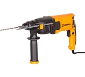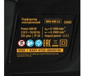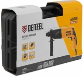 Электрический перфоратор Denzel RHH-600-22 26602 мощностью 600 Вт, с патроном под хвостовик SDS-plus, развивает энергию удара 2,5 Дж и способен работать в 2-х режимах: сверление и сверление с ударом. Используется для получения отверстий в бетоне, камне, кирпиче, для штробления стен, а также сверления металла, пластика, древесины и других материалов. Максимальный диаметр сверления в бетоне составляет 22 мм, в древесине — 30 мм, в стали — 13 мм. Инструмент будет полезен любителям и профессионалам при выполнении ремонтно-строительных работ.ПреимуществаНастройка оптимального режима — скорость вращения шпинделя и частота ударов плавно регулируются в диапазоне 0-1000 об/мин и 0-3900 уд/мин соответственно.Реверс — смена направления вращения оснастки облегчает извлечение застрявшего бура.Точность выполняемых работ — ограничитель глубины сверления позволяет получать одинаковые отверстия.