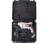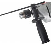 Тип инструмента: ударная. Потребляемая мощность: 850. Количество скоростей: односкоростная. Наличие функции "сверление с ударом": есть. Количество патронов в комплекте: один. Тип основного патрона: ключевой. Максимальный диаметр сверления (сталь): 10. Максимальный диаметр сверления (бетон): 13. Максимальный диаметр сверления (дерево): 25. Наличие функции "реверс": есть. Дополнительная рукоятка: есть. Ограничитель глубины сверления: есть. Особенности: Точная электронная регулировка частоты вращения. Реверс отлично справляется с разблокировкой заклинившего сверла. Выбранный режим безопасно фиксируется посредством специальной кнопки. Рукоятка оснащена мягкой накладкой для более комфортной работы.. Вес инструмента: 2.4. Длина сетевого кабеля: 2. Длина инструмента: 320. Высота инструмента: 210. Комплект поставки: Дрель ударная, вторая рукоять, инструмент для ограничения глубины отверстия, ключ для патрона, руководство по эксплуатации, коробка картонная.. Габариты упаковки (ед) ДхШхВ: 0.3x0.066x0.28. Вес упаковки (
