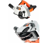 Мощность - 2200Вт. Макс. обороты - 5500об/мин. Наружный диаметр - 235мм. Посадочный диаметр - 30мм. Макс. глубина пропила - 85мм. Возможность использования с направляющей шиной, возможность работы по металлу.
