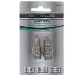 Универсальный быстросъемный ниппель Stels 57061 со штуцером «елка», 2 шт. в упаковке, предназначен для подсоединения пневматического шланга диаметром 8 мм к компрессору с выходом «папа» 1/4 дюйма. Будет полезен для работы с пневмоинструментом. Преимущества Износостойкость — ниппель изготовлен из прочной стали. Легкая установка — благодаря быстросъемному соединению подключение шланга занимает несколько секунд. Удобная комплектация — в набор входит 2 ниппеля.
