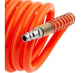 Шланг пневматический спиральный PU 15/8 предназначен для подачи сжатого воздуха от компрессора к пневмоинструменту. Спиральная структура шланга обеспечивает удобство использования и исключает образование перегибов и деформации. Не теряет эластичность при низких температурах. Оснащен быстросъемными штуцерами, обеспечивающими легкое присоединение и надежное крепление. Длина – 15 м.
