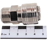 Универсальная быстросъемная муфта Stels 57065 с внешней резьбой 1/2 дюйма, 1 шт. в упаковке, позволяет герметично подключить пневматический шланг к компрессору со входом «мама». Используется для работы с пневмооборудованием, будет полезна во время ремонта, на строительной площадке и в гараже.ПреимуществаПрочность — муфта из высококачественной стали не деформируется под давлением сжатого воздуха.Быстросъемное соединение — шланг подключается к муфте одним движением.Удобная упаковка — муфта поставляется в блистере, позволяющем осмотреть ее перед покупкой.