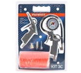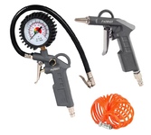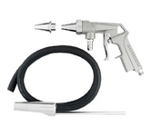 Набор пневмоинструмента из 3 предметов с насадками предназначен для накачки различных изделий и очистки сильно загрязненных деталей сухой продувкой. Инструменты снабжены быстросъёмным соединением. Рабочее давление, бар 10. Шланг спиральный 5 метров.