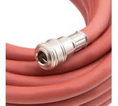 Пневматический армированный резиновый шланг Stels 57021, 10 х 16 мм, длиной 10 м, с быстросъемами, служит для подключения пневматического оборудования к компрессору и выдерживает давление до 24 бар. Изготовлен из резины и армирован капроновой нитью, что обеспечивает высокую устойчивость к механическому воздействию и пережатию, а также к перепадам температур. Может использоваться для прокладки воздушной магистрали. Шланг пригодится на производстве, строительной площадке и в автосервисе.ПреимуществаБыстросъемные соединения типа рапид облегчают подключение шланга к компрессору и пневматическим инструментам.Антикоррозийное никелевое покрытие защищает штуцер и муфту от ржавчины, что увеличивает срок их службы.Длина 10 м обеспечивает мастеру свободное перемещение во время работы.Увеличенная толщина шланга придает ему повышенную прочность.