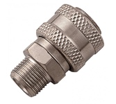 Универсальная быстросъемная муфта «мама» с внешней резьбой 3/8 " используется в качестве соединяющего элемента при сборке пневматической системы. Подключение инструмента к компрессору через воздушный шланг занимает несколько секунд, с ним справится даже новичок.Преимущества:Стальная конструкция гарантирует безопасную эксплуатацию, поэтому прослужит долго.Защита от протечек воздуха позволяет добиться стабильно высокой производительности пневмоинструмента.В комплект поставки включены 2 муфты.