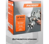 Пневмокраскораспылитель PATRIOT LV 162В, Расход воздуха: 400 л/мин; Объем бачка для краски: 1 л. нижний; Давление: 3.0-4.0 бар; Диаметр сопла: 1,5 мм; Ширина факела: 120-220 мм; Соединение: быстросъем.