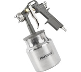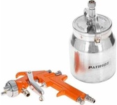 Пневмокраскораспылитель PATRIOT LV 162А, Расход воздуха: 400 л/мин; Объем бачка для краски: 0.5 л. верхний; Давление: 3.0-4.0 бар; Диаметр сопла: 1,5 мм; Ширина факела: 120-220 мм; Соединение: быстросъем.