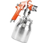 Краскопульт пневматический с верхним бачком DEKO DKSG01 (500мл, металл) используется для обработки поверхности водно-меловыми и водно-известковыми составами при строительно-отделочных работах, при опрыскивании и побелке садов, дезинфекции помещений. Сопло 1,5 мм Рабочее давление 3-4 бар Объем 500 мл