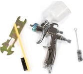 Краскораспылитель STELS системы LVLP (Low Volume Low Pressure «низкий объем, низкое давление»), с верхним бачком предназначен для нанесения декоративных, покрытий на различные поверхности. Корпус краскораспылителя имеет защитное покрытие из полированного хрома. Объем бачка 120 мл. Расход материала 70-100 мл/мин. Максимальное давление 3,5 бар. Диаметр пневморазъема 1/4. В комплекте поставляется универсальный ключ и ершик для чистки.