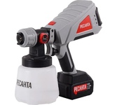 Краскопульт аккумуляторный Ресанта АКП-20Li 75/17/3 - аккумуляторный краскораспылитель Ресанта, предназначенный для нанесения лакокрасочных материалов, грунтовок, морилок, средств защиты древесины и растений, масел, антикоррозионных покрытий, дезинфицирующих средств на основе растворителей и воды и других неэлектропроводных жидкостей определенной вязкости на небольшие по площади поверхности при помощи воздушного распыления.