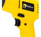 Сетевая дрель-шуруповерт KOLNER KED 240V. Напряжение сети/Частота: 220 В ± 10% / 50 Гц. Мощность: 240 Вт. Число оборотов на холостом ходу: 0-800 об/мин. Максимальный крутящий момент: 13 Нм. Число ступеней крутящего момента: 20+1 (ступень сверления). Патрон: быстрозажимной. Диаметр патрона: 0,8-10 мм. Максимальный диаметр сверления: дерево - 15 мм, металл - 6 мм. Длина сетевого кабеля: 2 м.