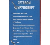 400 Вт; 220/50 В/Гц; 0-800 об/мин; Быстрозажимной патрон; диаметр сверла 10 мм; Максимальный диаметр сверления в древесине 25 мм; Максимальный диаметр сверления в стали 10 мм; регулировка скорости; реверс