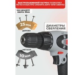 Быстрозажимной патрон. Диаметр зажимаемого сверла, мм: 0,8-10. Диапазон частоты вращения на холостом ходу, об/мин: 0-450/0-1800. Длина шнура питания с вилкой м: 2. Класс безопасности машины (по ГОСТ Р МЭК 60745-1): II. Кол-во диапазонов момента затяжки: 20+1. Масса согласно процедуре EPTA 01/2003, кг, не более: 1,4. Наибольший диаметр завинчиваемых шурупов, мм: 6. Наибольший диаметр сверления в древесине, мм: 25. Наибольший диаметр сверления в стали, мм: 10. Номинальная потребляемая мощность, Вт: 260. Номинальный крутящий момент , Нм: 35. Параметры сети питания, В/Гц: 220 ±10% / 50. Регулировка оборотов. Смена направления вращения.