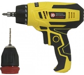 Ручная электрическая дрель с функцией шуруповёрта (сверлильная машина) Калибр ДЭ-310Ш предназначена для сверления отверстий в цветных и чёрных металлах,пластмассах,дереве и других строительных материалах.Кроме того инструмент можно использовать для завинчивания и отвинчивания винтов,шурупов,саморезов при монтажных и строительных работах,как в производственных,так и бытовых условиях.Регулировка частоты вращения; Кнопка блокировки клавиши выключателя; Наличие реверса; Подсветка рабочей зоны; Переключатель направления вращения.Характеристики,Потребляемая мощность 310 Вт,Частота вращения патрона на холостом ходу,об/мин 0-750,Диаметр зажимаемого сверла,мм 0.8-10 мм,Тип патрона быстрозажимной,Максимальный крутящий момент 25 Нм,Максимальный диаметр сверления: - металл 10 мм,- дерево 20 мм,Класс безопасности (ГОСТ Р МЭК 60745-1-2011) II,Длина шнура питания с вилкой,не менее 2 м,Электродвигатель однофазный коллекторный,Номинальное напряжение/Частота 220 В/50 Гц,Габариты в упаковке (ДхШхВ) 235х70х210 мм.