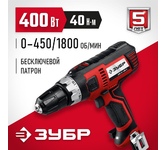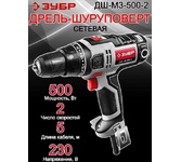 ЗУБР ДШ-М3-500-2 дрель-шуруповерт сетевая, 500 Вт, 0-450/0-1800 об/мин