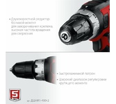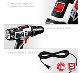 Мощность, Вт 500. Частота вращения шпинделя, об/мин 0-500/0-1800. Число скоростей2. Крутящий момент, Н*м 45. Число ступеней крутящего момента 21+1. Тип патрона бесключевой. Размер патрона, мм 1.5-13. Реверс. Быстрая замена щеток. Наличие подсветки. Блокировка шпинделя. Длина кабеля, м 5. Напряжение, В/Гц 220±10% /50. Габариты, см 26.5x7.5x24.5. Масса изделия, кг 1.6. Масса в упаковке, кг 1.95. Комплектация. Дрель-шуруповерт 1. Битодержатель 1. Скоба поясная 1. Руководство по эксплуатации 1.