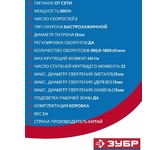Мощность - 550Вт. Макс. обороты - 1500об/мин. Тип патрона - БЗП. Диаметр патрона - 10мм. Макс. крутящий момент - 36Нм. Макс. диаметр сверления металл/дерево - 10/25мм. Электронная регулировка числа оборотов, подсветка рабочей зоны.
