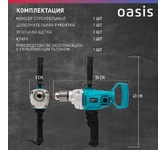 Мощность, Вт 1200. Параметры электросети, В/Гц 220/50. Частота вращения шпинделя, об/мин 0-850. Максимальный крутящий момент, Н·м 90. Тип патрона ключевой. Размеры изделия, мм 430?90?350. Вес нетто, кг 2,73. Миксер – 1 шт. Дополнительная рукоятка – 1 шт. Угольная щётка – 2 шт. Ключ – 1 шт. Руководство по эксплуатации - 1 шт