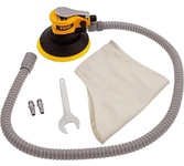 Пневматическая эксцентриковая шлифовальная машина Denzel EPG150 57476 с амплитудой 5 мм развивает скорость вращения 10000 об/мин при среднем расходе воздуха 160 л/мин. Этого достаточно для эффективного шлифования, зачистки и выравнивания любых поверхностей (древесины, металла, пластика и т.д.). С помощью машинки можно без усилий подготовить материал любой твердости к покраске или отделке, выровнять металл перед сваркой. А при использовании более мягкой насадки получится сделать любую поверхность абсолютно гладкой и придать ей дополнительный блеск.Орбитальная шлифмашина предназначена для работы при давлении 6,3 бар, расход воздуха не превышает 200 л/мин. Во время работы не забывайте использовать специальное масло ISO 46, которое можно добавлять как напрямую в инструмент, так и с помощью блока подготовки воздуха Denzel 57469, включающего в себя лубрикатор для автоматической подачи масла.
