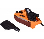 Мощность, Вт 800. Параметры электропитания, В/Гц 220/50. Скорость ленты на холостом ходу, м/мин 380. Шлифовальная поверхность, мм 76х120. Размер шлифовальной ленты, мм 76х457. Размеры изделия, см 30х17х14. Вес нетто, кг 2,89.