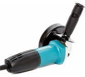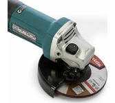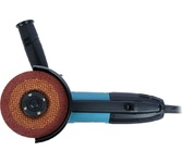 Профессиональная большая двуручная углошлифовальная машина. Применяется для абразивной резки металлоизделий, для шлифовки, зачистки сварных швов. Номинальная потребляемая мощность - 2300 Вт. Максимальный O диска - 230мм. O резьбы шпинделя - М14. Длина резьбы шпинделя - 14мм. Диаметр посадочного отверстия шлифкруга - 22,2мм. Частота вращения на х/х - 6500 об/мин. Плавный пуск - Есть. Регулировка оборотов - Нет. Поддержание оборотов - Нет. Стабилизация оборотов - Нет. Фиксация выключателя - Есть. Защита от повторного включения - Нет. Защита от перегрузки - Нет. Защита от перегрева - Нет. Защита от заклинивания - Нет. Поворотная основная рукоятка - Есть. Класс безопасности машины по ГОСТ12.2.013.0-91 - II. Масса 5,9 кг.