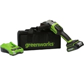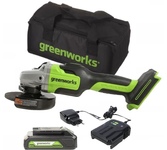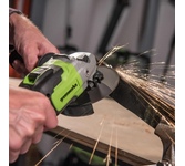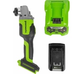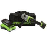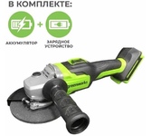 Особенности: Бесщёточный электродвигатель позволяет работать на одной зарядке в 1.5 раза дольше, чем универсальный коллекторный. ONE BATTERY SYSTEM, аккумуляторная батарея с унифицированным присоединением ко всем бесщёточным электроинструментам марки Hanskonner. USB разъём «мама» на аккумуляторе. Позволяет подзарядить телефон, и подключить много различных аксессуаров(фонарик в комплекте). Аккумулятор с индикатором заряда. Блокировка шпинделя Кабель зарядного устройство "velcro-belt". Быстросъемный кожух «FastAdapt» значительно сокращает время на перенастройку инструмента, переставляется одним движением и обеспечивает безопасность. Дополнительная двухпозиционная рукоятка наклонена к корпусу редуктора для повышения удобства в работе. Запатентованная рукоятка с твердосплавной «чертилкой» в комплекте. Усовершенствованная защита от попадания пыли «DustShield» снижает попадание пыли вовнутрь инструмента на 65%. Что особенно важно для работы бесщёточным инструментом с металлом. Плавный пуск исключает стартовый рывок