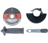 Компактная УШМ Denzel с выраженной задней рукояткой предназначена для выполнения отрезных, шлифовальных, зачистных операций с металлическими конструкциями или заготовками с использованием специальных абразивных дисков и щеток. Возможно применение для обработки камня, бетона, кирпича при соблюдении определенных условий. Особенности: пылезащитный бандаж двигателя; лабиринтная защита переднего подшипника шпинделя; система регулировки частоты вращения Преимущества: возможность использования для обработки камня благодаря усиленной пылезащите; быстрый доступ к щеточному узлу без разборки корпуса Комплектация: Машина шлифовальная угловая - 1 шт.; Рукоятка боковая - 1 шт.; Ключ специальный - 1 шт.; Комплект запасных угольных щеток - 1 шт.; Инструкция по эксплуатации и гарантийный талон - 1 шт.
