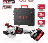 P.I.T. Шлифмашина угловая аккум. бесщёточная PWS20H-125D/1 (20В, 125мм, 3 ск, 1 акб 4,0Ач, ЗУ, кейс)
