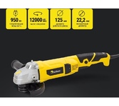 Мощность: 900. Регулировка частоты оборотов: нет. Диаметр шлифовального круга: 125. Резьба шпинделя: M14. Система гашения вибрации: нет. Блокировка шпинделя: нет. Плавный пуск: нет. Защита от непреднамеренного включения: есть. Поворот рабочей головки: нет. Вес товара: 2.3. Особенности: Дополнительная защита электродвигателя от пыли. Усиленный редуктор в металлическом корпусе. Вспомогательная боковая рукоятка.. Комплект поставки: Углошлифовальная машина, инструкция.. Суперфланец: нет. Тип электропитания: от электросети. Габариты упаковки (ед) ДхШхВ: 0.32x0.11x0.11. Вес упаковки (ед): 1.75. Тип электрического двигателя: щеточный. Кейс в комплекте: нет. Бесключевая замена оснастки: нет. Датчик падения: нет. Защита двигателя от перегрева: нет. Класс инструмента: бытовой. Общее количество рукояток: 2. Количество скоростей: 1. Поддержание постоянных оборотов под нагрузкой: нет. Посадочный диаметр: 22.2. Предохранительная муфта: нет. Рукоятка с мягкой накладкой: нет. Система быстрого доступа к щеткам: нет. Фиксация