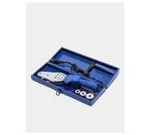 Потребляемая мощность, В, Гц, Вт: 220~50, 1500; Температура нагрева, °C: 0-300; Диаметр наконечника, мм: 20-32; Нагревательный элемент, шт: 1; Насадки, шт: 3; Размер сменных насадок, мм: 20, 25, 32; Термостат: +; Форма нагревателя: мечевидный; Упаковка: металлический кейс