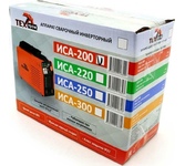 220В/~50-60Гц; 54,9А/12,1кВт; 20А/20,8В-250А/30В; 2,0-4,0мм, два дисплея, рег-ка форсажа, рег-ка розжига дуги)
