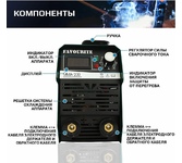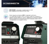 Потребляемая мощность (кВт): 4. Диапазон сварочного тока (А): 10 — 200. Цикл работы (%) 60Диаметр электродов (мм): 1.6 — 4. Напряжение холостого хода (В): 65+/-5. Класс защиты: IP 21. Система антизалипания электрода, термозащита: Да. ЖК дисплей с индикацией параметров сварочного процесса: Да Уверенная работа при колебаниях напряжения в сети: Да. Легкий поджиг и высокая стабильность дуги: Да. Работы от бензогенератора: Да.