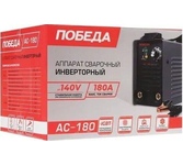 Сварочный аппарат инверторный, входное напряжение 1ф - 220В, потребляемая мощность - 4.5 кВА, сварочный ток мин/макс - 20/180А, ПВ-60%, диаметр электрода - 1.6/4 мм, комплектация: держатель электрода, клемма-земля. Функция антизалипания, горячий старт, жесткость дуги. Ремень для переноски. Вес 4.8 кг.