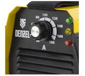 Инверторный аппарат дуговой сварки Denzel DM-160 Standart 94323 работает с максимальным сварочным током 160 А, имеет продолжительность включения 60% и позволяет сваривать конструкции из низкоуглеродистой стали электродами диаметром до 3,2 мм. Обеспечивает бесперебойную работу даже при нестабильном напряжении. Устройство пригодится сотрудникам коммунальных служб, также будет полезно в быту.ПреимуществаУдобное управление — величина сварочного тока легко устанавливается при помощи поворотного регулятора.Контроль рабочих параметров — на панели управления имеется цифровой дисплей, отображающий текущее значение сварочного тока.Высокий ресурс — эффективная система охлаждения продлевает срок службы аппарата.Термозащита — в случае перегрева внутренних компонентов загорается световой индикатор, после чего работу необходимо прервать.Защита от перегрузки — если сила тока превышает предельно допустимое значение, аппарат отключается для предотвращения поломки.