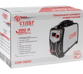 Сварочный аппарат инверторный 220А (IGBT), напряжение сети/частота 220 В (+10; -30%) / 50 Гц, максимальная потребляемая мощность 4,6 кВт, диапазон сварочного тока 20-220 А, род сварочного тока- постоянный, напряжение холостого хода 24,8 В, диаметр электродов 1,6-5 мм, длина сетевого кабеля 3 м, масса 3,5 кг. стабильная работа при пониженном напряжении, высокая производительность (рабочий цикл 80%), VRD. HOT START. ANTI- STICK. ARC FORCE, цифровой дисплей