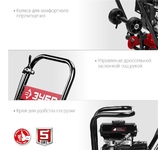 16кН; 4200уд/мин; 540х430мм; 20-25м/мин; 486м2/час; 30см; двигатель: Loncin G200F; 4,1кВт; 3600об/мин; 3,6/0,6л; ручной стартер; бензин АИ-92