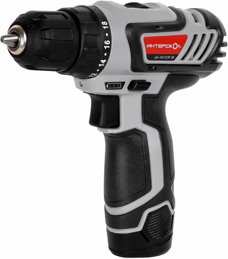 INTERSKOL Аккумуляторная дрель-шуруповерт ДА-10/12ЭР 28 ПРОМО, 12В, 1400 об/мин, с 1 АКБ 2 Ач и ЗУ И