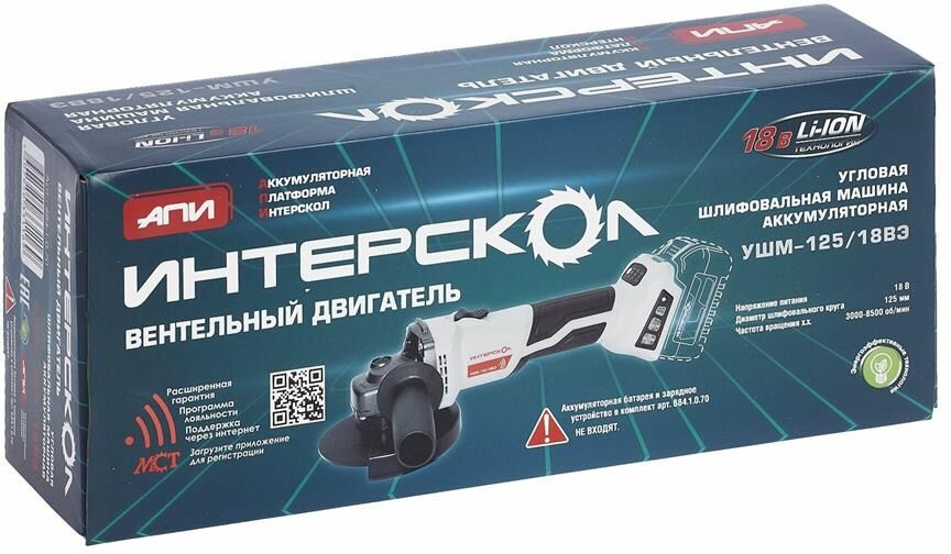 INTERSKOL Бесщеточная аккумуляторная угловая шлифмашина УШМ-125/18ВЭ ИНТЕРСКОЛ 684.4.1.70