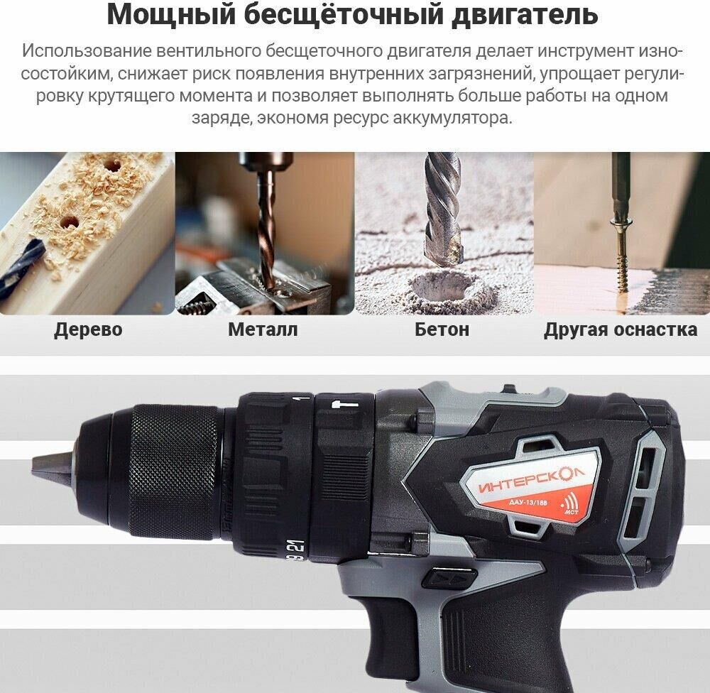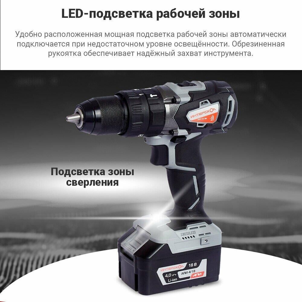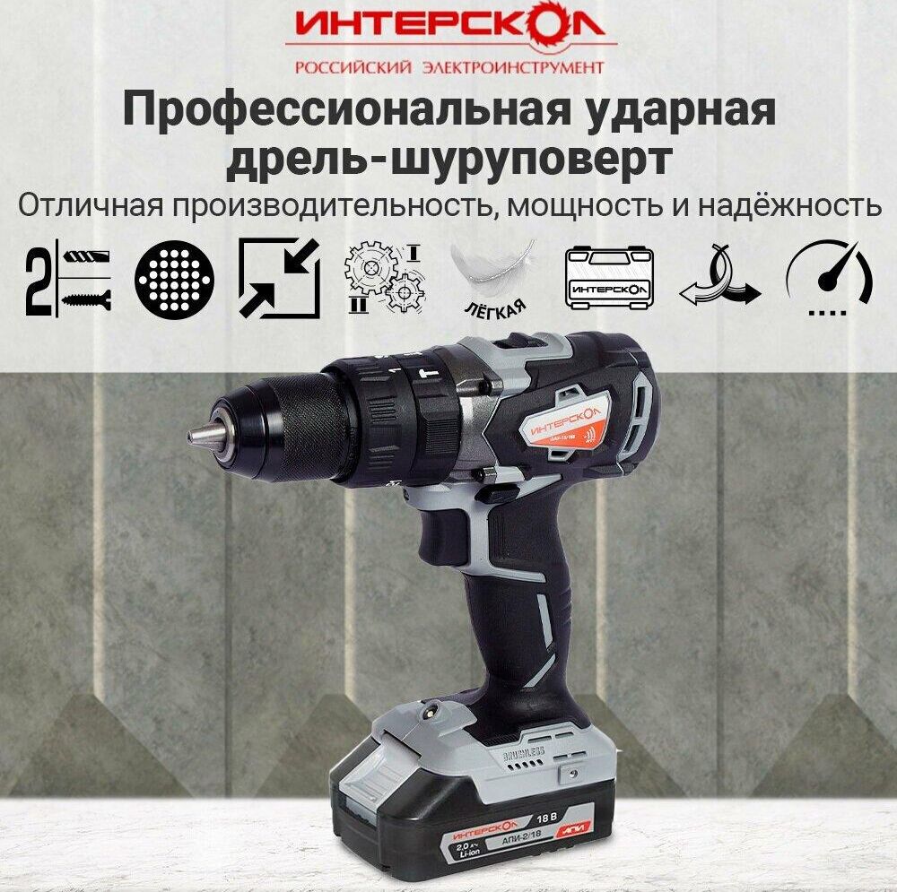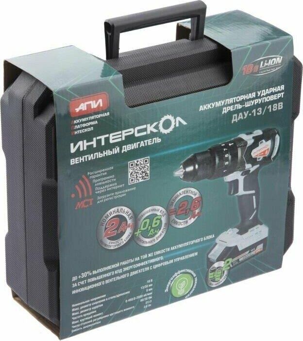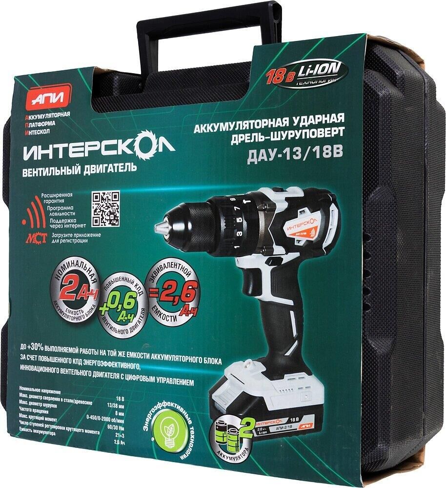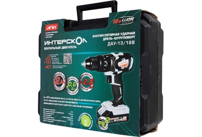 ИНТЕРСКОЛ ДАУ-13/18ВК бесщеточная удар.Li-ion АПИ (кейс, 2 аккум. 2Ач, ЗУ)