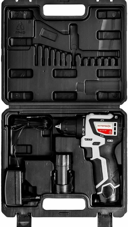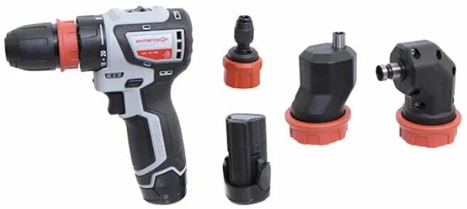 Интерскол КомбиМАКС ДА-10/12В (687.2.2.79), кейс, 4 насадки, 2 АКБ, 2 Ач