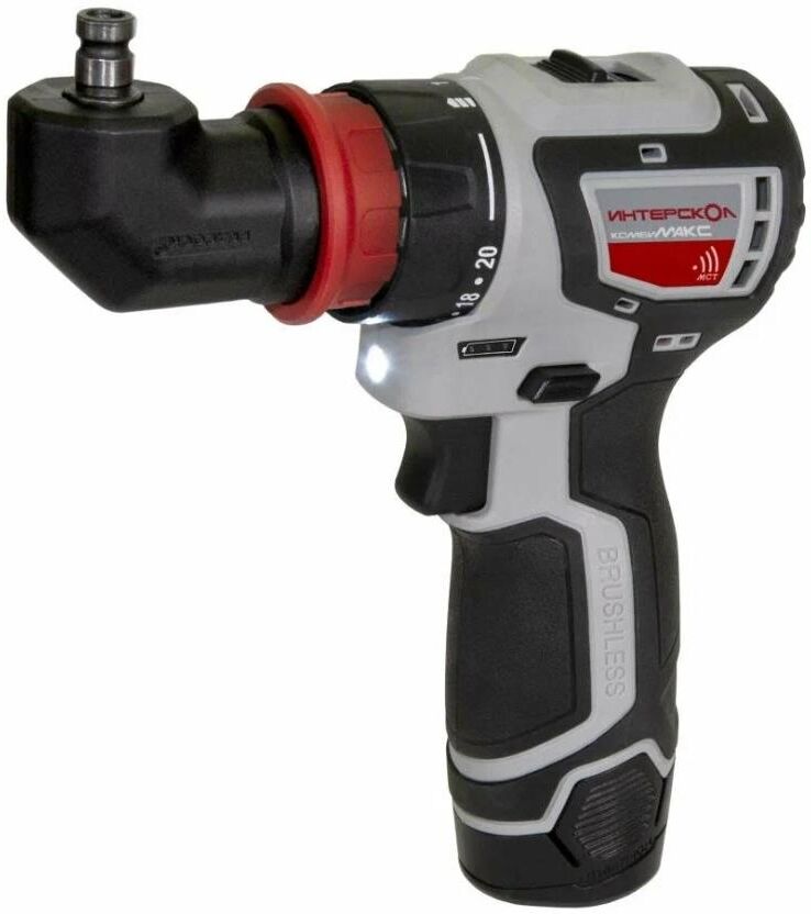 Самый компактный в своем классе профессиональный шуруповерт с широким диапазоном применения за счет комплектации эксцентриковыми насадками для работ в самых труднодоступных местах. Сочетание короткой базы и эксцентриковых насадок делает его незаменимым при монтажных работах, сборке мебели. Наличие 2 аккумуляторов емкостью 2 а/часа с быстро зарядным устройством позволяет полноценно работать, не отвлекаясь на перерывы из-за разряда аккумулятора. Преимущества: Увеличенный ресурс за счет бесщеточного вентильного двигателя Эквивалентная емкость на 30% больше за счет повышенного КПД двигателя с цифровым управлением Двухскоростной редуктор Индикатор уровня остаточного заряда Моноблочная беcтрансформаторная часовая зарядка Комплектуется насадками для закручивания вплотную к углу, углового закручивания/ сверления, а так же насадкой с механическим зажимом для хвостовиков HEX 1/4 Муфта ограничения усилия 20+1 Блокировка шпинделя Оснащен безключевым патроном Съемный патрон и магнитный фиксатор бит в шпинделе превращает о