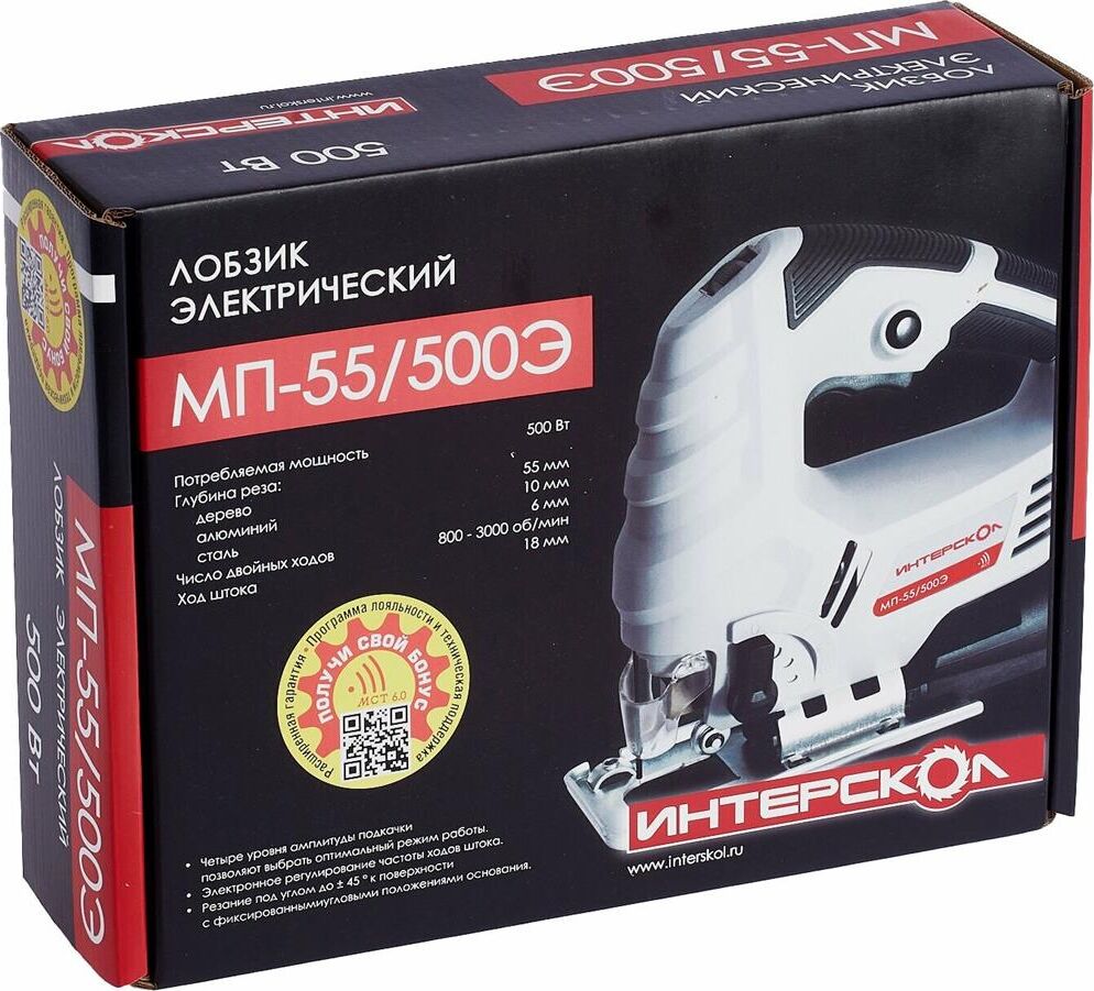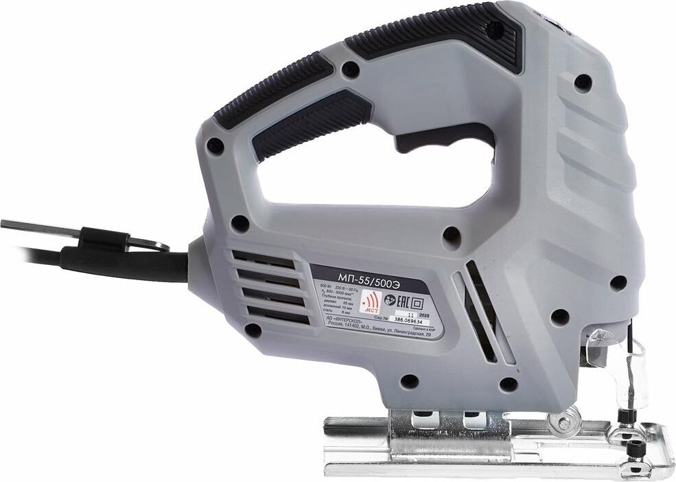 Параметры сети питания, В/Гц: 220 ±10% / 50, Номинальная потребляемая мощность, Вт: 500, Номинальный потребляемый ток, А: 2,3, Наибольшая глубина пропила в стали, мм: 6, Наибольшая глубина пропила в алюминии, мм: 10, Наибольшая глубина пропила в древесине , мм: 55, Ход штока, мм: 18, Наибольший угол наклона при наклонном резе, град.: ±45, Частота двойных ходов штока на холостом ходу, ход/мин: 800...3000, Электронный блок управления, Маятниковый ход, Тип зажима пилки: винтовой, Хвостовик пилки: Т-образный, Класс безопасности машины (по ГОСТ Р МЭК 60745-1): II, Установленный срок службы, лет: 3, Масса, кг: 1,6, Электронный блок управления, Маятниковый ход.