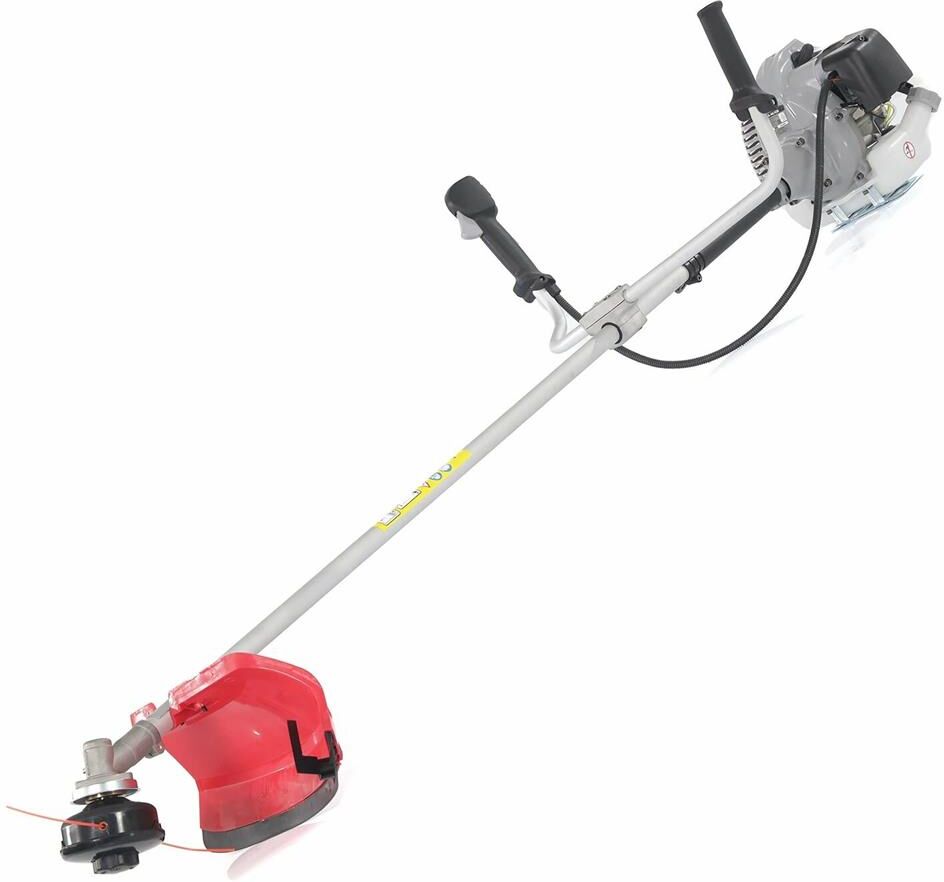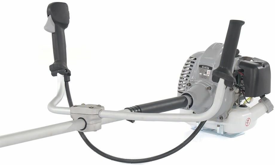 Тип двигателя: бензиновый. Расположение двигателя: верхнее. Форма штанги: прямая. Объем двигателя: 43. Кол-во тактов двигателя: двухтактный. Емкость топливного бака: 1.2. Режущий элемент: леска и нож. Диаметр круга стрижки: 44. Диаметр используемой лески: 2.4. Размер используемого ножа: 25525.4. Тип крепления триммера: ранцевое. Комплект поставки: Кусторез,Руководство по эксплуатации и Инструкция по безопасности,Гарантийный талон,Рукоятка двухсоставная велосипедного типа,Нож трёхлопастный,Комплект крепежа для ножа,Кожух защитный ножа,Комплект крепежа кожуха защитного,Головка режущая с леской,Ранцевый ремень,Набор инструмента для обслуживания. Особенности: Двигатель оснащен системой "Легкий старт", удобный запуск без лишних рывков.Цельнометаллический кованый вал.Электронное зажигание.В комплекте - все, что нужно для комфортной эффективной работы. Антивибрационная система. Мощность двигателя (л.с.): 1.9. Обороты двигателя: 7500. Материал ножа: металл. Тип косильной катушки: полуавтоматическая. Форма рукоятки: U