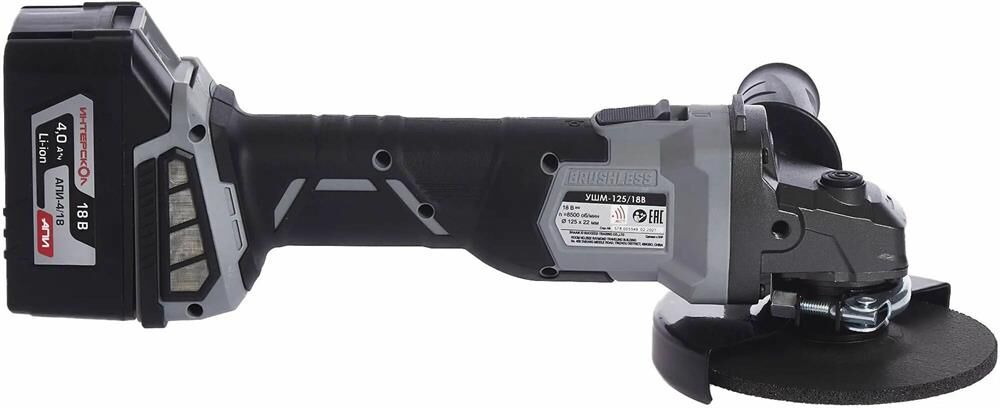 Тип аккумулятора: Li-Ion Напряжение аккумулятора, В: 18 Емкость аккумулятора, А·ч: 4 Количество аккумуляторов в комплекте: 1 Устройство аккумулятора: слайдер Индикатор заряда: нет Зарядное устройство в комплекте: есть Диаметр диска, мм: 125 Диаметр посадочного отверстия, мм: 22.2 Резьба шпинделя: М14 Min число оборотов, об/мин: 8500 Max число оборотов, об/мин: 8500