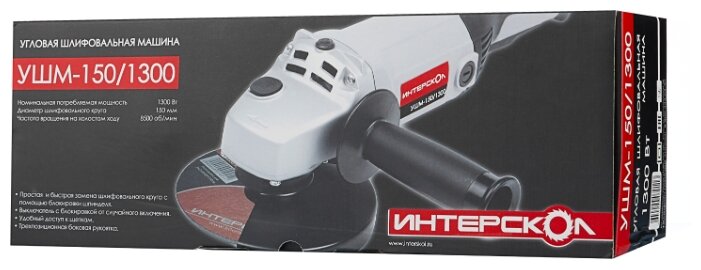 Потребляемая мощность: 1300Вт; число оборотов: 8500 об/мин; диаметр круга: 150мм; резьба шпинделя: M14; вес: 2.9кг.