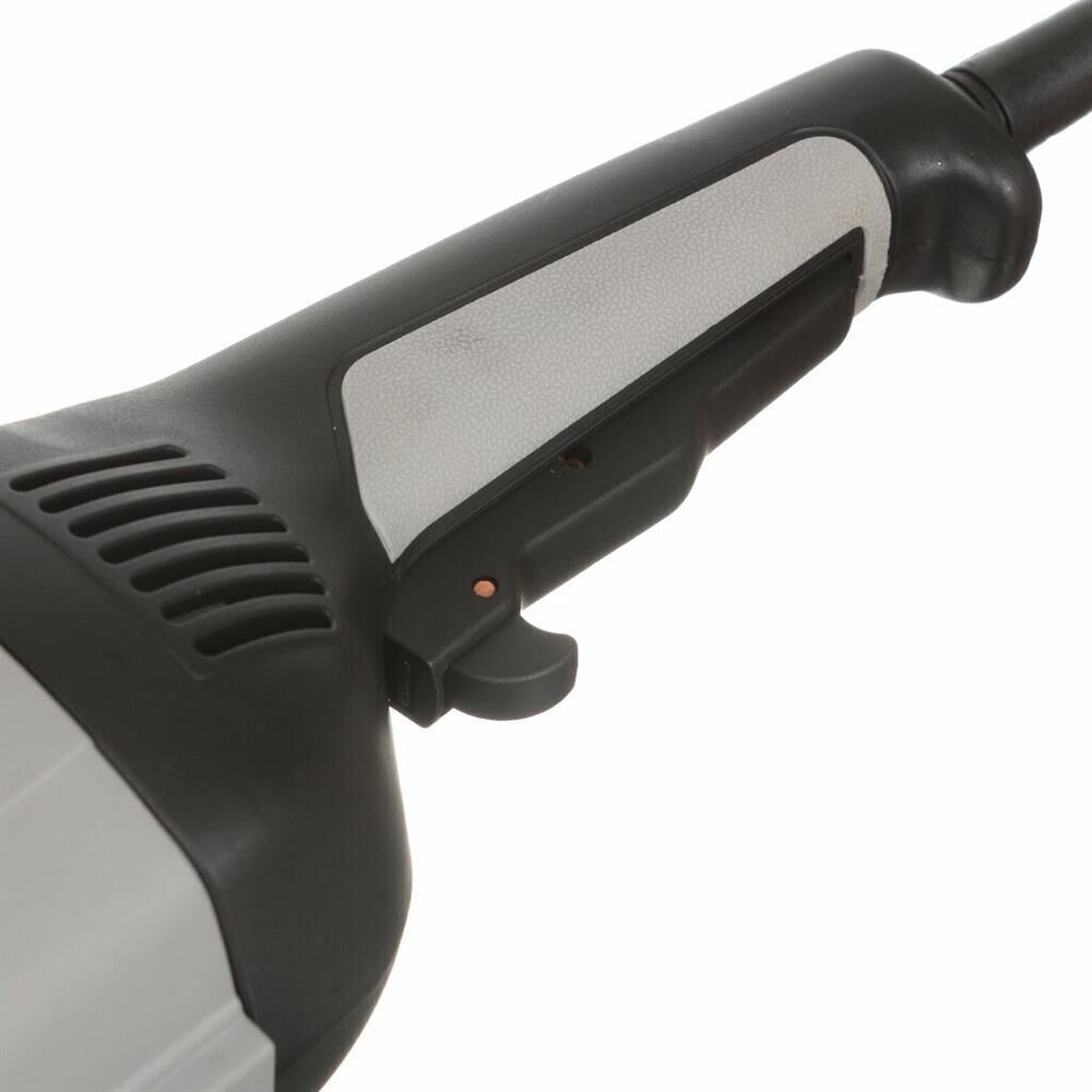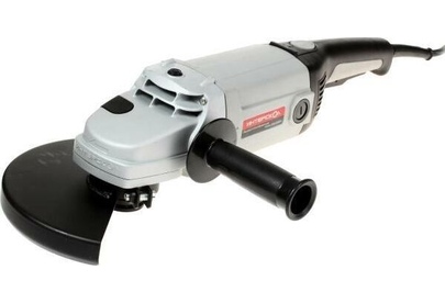 Профессиональная большая двуручная углошлифовальная машина. Применяется для абразивной резки металлоизделий, для шлифовки, зачистки сварных швов. Номинальная потребляемая мощность - 2300 Вт. Максимальный O диска - 230мм. O резьбы шпинделя - М14. Длина резьбы шпинделя - 14мм. Диаметр посадочного отверстия шлифкруга - 22,2мм. Частота вращения на х/х - 6500 об/мин. Плавный пуск - Есть. Регулировка оборотов - Нет. Поддержание оборотов - Нет. Стабилизация оборотов - Нет. Фиксация выключателя - Есть. Защита от повторного включения - Нет. Защита от перегрузки - Нет. Защита от перегрева - Нет. Защита от заклинивания - Нет. Поворотная основная рукоятка - Есть. Класс безопасности машины по ГОСТ12.2.013.0-91 - II. Масса 5,9 кг.
