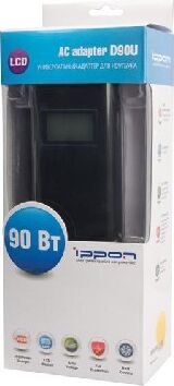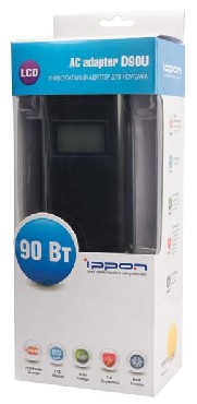 универсальный импульсный адаптер питания для ноутбуков с максимальной выходной мощностью 90Вт.Подробное описание и характеристики на сайте-www.ippon.ru.